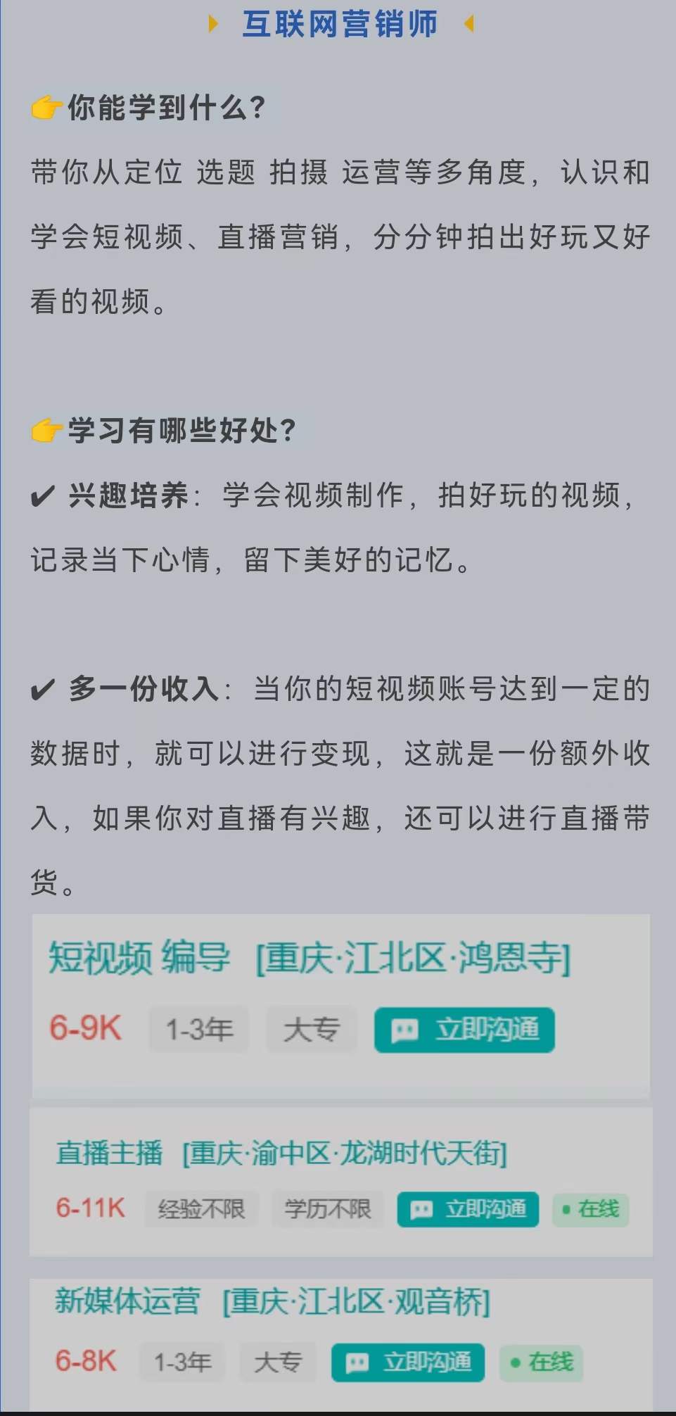根據學員需求,學校提供電商平臺運營、直播帶貨創業扶持
