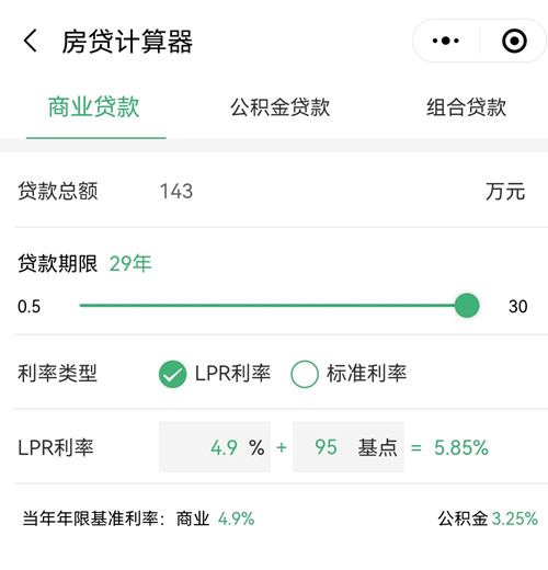 通過上圖,我們可以看到肖老師目前商貸剩余還有143萬(看整數),商貸利率是5.85%,這個利率相對來說也是比較高的了。